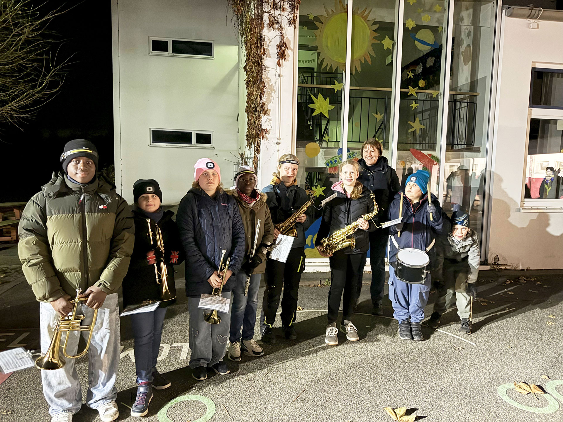 Traditionell konnten die Nachwuchsmusiker und Musikerinnen beim Martinszug erstmals die Gelegenheit wahrnehmen, gemeinsam mit den „Großen“, St. Martin samt seinem Tross auf seinem Weg durch „All die Strooße“ von Sinzenich musikalisch zu begleiten. Dieser ließ es sich dann auch nicht nehmen, die Mädels und Jungs mit einem Wecken zu belohnen.